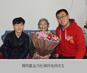 2016年清明节前夕,学院杜锦珠老师即将迎来90岁大寿。3月31日下午,北京大学生命科学学院刘超老师带领高千千、赵世俊两位同学一道,代表校友尊师基金来到位于海淀区花园村的杜老师家中,为其庆生。