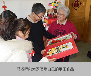 聊天过程中,大家了解到马老师是一个非常热爱生活的人。平时喜欢书法与手工艺品制作的她,在家中墙壁上挂着自己亲手制作的金鸡送福剪纸画,还利用生活中剩余的月饼盒和药盒制作了精美的装饰品和收纳盒,既实用又环保。期间,众人还收获了马老师赠与的小礼物——废品收纳盒,着实让大家惊喜了一番。