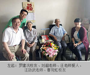 学院汪劲武老师迎来了他90岁生日。27日上午10点,学院校友会刘超老师与82级校友罗建沅、曹宛虹一道,代表校友尊师基金前往中关园汪老师家中,为其庆生。校友们为老师送上贺卡、鲜花与蛋糕,并于汪老师攀谈起当年上学时的趣事。