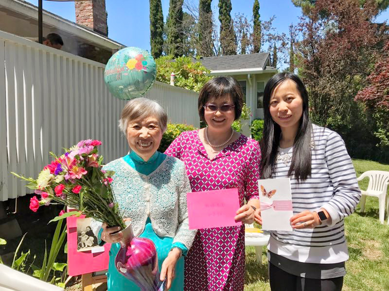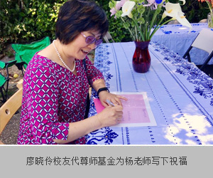 2017年端午佳节来临之际,恰逢现居美国旧金山地区的杨端老师八十大寿。 尊师基金执委廖晓伶校友及孙实笏校友来到杨老师家中,为其庆生,并代表尊师基金向杨老师献上了她最爱的栀子花一盆及鲜花一束,及各个年龄段的学生们共同写下的生日贺卡。杨老师和老伴赵明蓟老师初识于未名湖畔,为我院54级校友,均曾长期任教于生命科学学院。二老为不远千里仍能收到基金的生日祝福感到十分欣慰。我院校友随科学的足迹遍布全球,这也是基金首次走出国门,在海外为老师庆生。