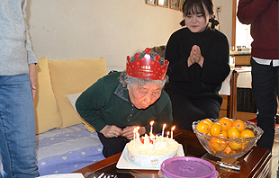 上午10时许,师生一行来到李老师家。李老师热情地迎接大家入门。虽已80高龄的她,依然精神矍铄、笑容饱满,家里家外,都是一把好手。李老师热情地招待大家吃糖和水果。一番寒暄后,老师和同学们为李老师的蛋糕上插上了8根蜡烛,寓意着80大寿以及我们对老师的美好祝福。在一阵欢声笑语和祝福的掌声中,李老师许愿并与大家分享了蛋糕。由于当日大风降温,李老师还特意煮了醪糟让大家暖身。