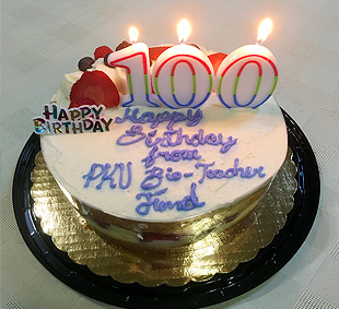在随后的交流中,钱老师回忆起近一个世纪以来的点点滴滴,思路是那么清晰,表达亦是十分流畅,众人与钱先生交谈许久,当得知已经是百岁高龄的钱存柔先生还在熟练的收发电子邮件和使用微信时,众人不禁为钱先生的与时俱进和充沛精力所感染。最后,众人一道合影留念并分享了美味的生日蛋糕,大家共同祝愿钱存柔先生健康长寿,幸福美满。