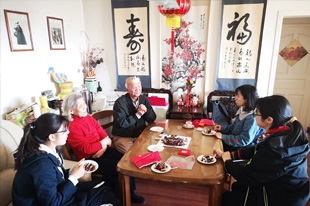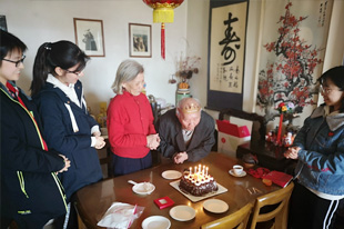 2019年3月6日,农历正月三十,是北京大学生命科学学院容寿榆老师的80岁生日。下午2时许,学院校友会的刘超老师与贺婉卓、李悦、韩祥丽三名同学一起,代表校友尊师基金来到容寿榆老师家中,为容老师庆祝生日。