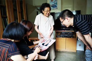 师生一行刚进门,即受到了李老师的热情接待。学院院党委书记、校友尊师基金执委会主任刘德英,代表学院师生校友并广大捐赠人,首先为李静涵老师送上了写满祝福的生日贺卡。众人落座交谈中,李老师显得十分兴奋,特意拿出了珍藏多年的老相册(其中就包括有其爱人陈德明教授在内的1950年8月31日乘美国总统轮船公司的“威尔逊总统号”回国的留美学者、学生的合影),并向大家逐一介绍着每张照片背后所记录的半个多世纪的风风雨雨与人物故事。当得知这其中的大部分照片竟是李老师亲自拍摄之时,众人眼中纷纷投来钦佩的目光。