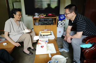 2019年6月19日农历五月十七,是学院李静涵老师的90岁生日。上午时分,学院刘德英书记、高凤茹、郝雪梅、刘超四位老师与学生志愿者覃艺芝同学一道,共同代表生命科学学院校友尊师基金广大捐赠人,来到李老师位于畅春园的家中为其庆生。